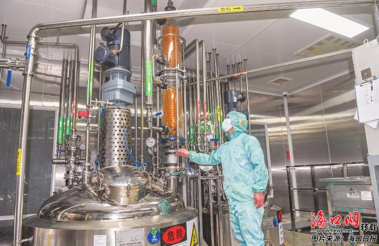 在位于海口國家高新區的新開利安生物科技(海南)有限公司,工作人員正在操作反應釜(結晶)。