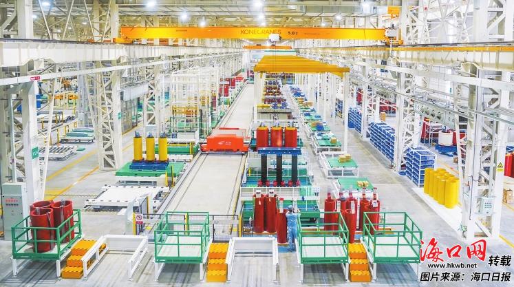 在金盤科技海口數字化工廠裝配車間,無人運輸車往來搬運物料,“中樞大腦”實時優化生產計劃,一臺臺干式變壓器通過多道工序后加快走下生產線。